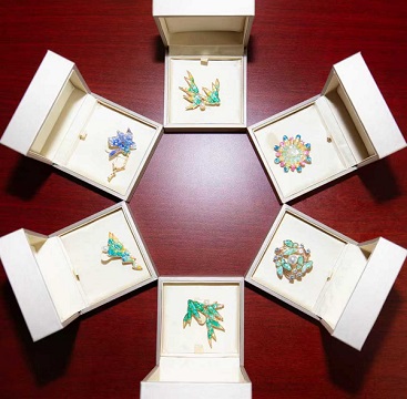 实操体验环节,现场热闹非凡,指导老师分步示范螺钿镶嵌的制作步骤,从研磨贝壳,到封层固化,其中的每一个环节都至关重要。全员随后迫不及待拿起材料和工具进行动手实践,过程中互相交流镶嵌技巧、分享创作灵感。随着胸针雏形的慢慢显现,原本单调的金属底胎,经过大家精心的色彩搭配和螺片设计,逐渐变成了一个个独具匠心的定制胸针。