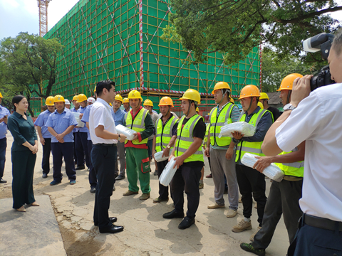 8月21日上午十一点,接近中午烈日炎炎,湘江集团党委书记、董事长张利刚一行来到MK(中国)承建的长沙科技创意园项目,现场看望慰问高温天气下依然坚守战斗在岗位上的广大建设者,为大家送来了冰箱、电风扇、凉茶、藿香正气水、夏桑菊、西瓜等防暑降温用品。