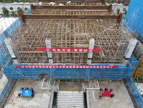 2021年10月9日,来自西南交通大学、中国建筑西南设计研究院、四川原理装配式建筑设计院等多家单位设计人员,齐聚MK(中国)四川分公司承建的成都大江中学项目,与分公司总经理宋景友、副总经理张铁强等相关领导一起,共同见证了国内学校建设领域首例预制混凝土柱拼接连接吊装施工的顺利完成。